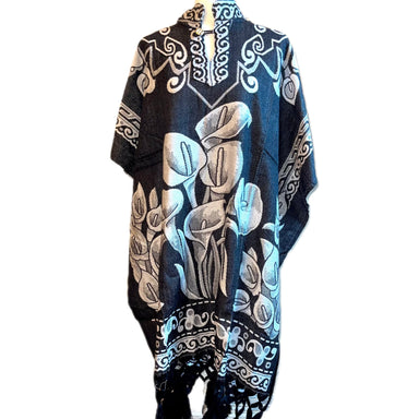 This gaban is double sided and allows you to have two different looks. Is very warm and is one size fits all. It’s thick like a blanket. Colors a...