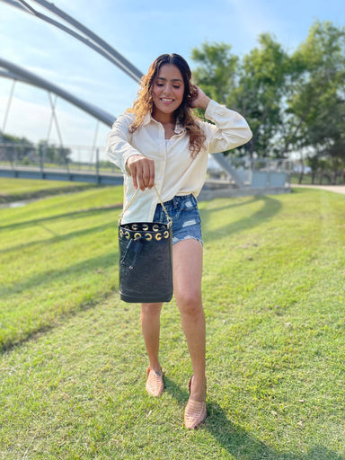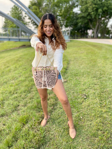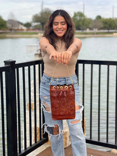 Yaretzi bucket bag is handcrafted in Jalisco, Mexico 🇲🇽. The interior is luxurious suede, and the exterior is gold-tone hardware. The crossbody s...
