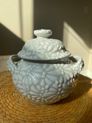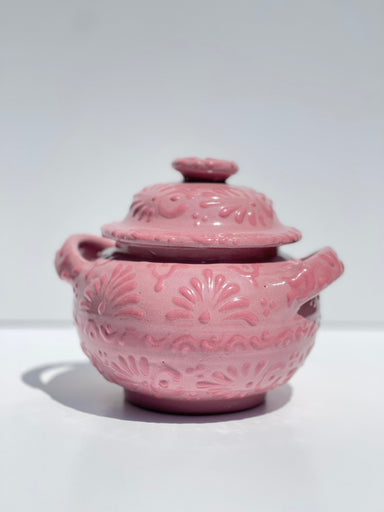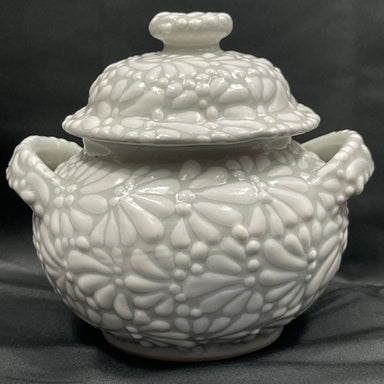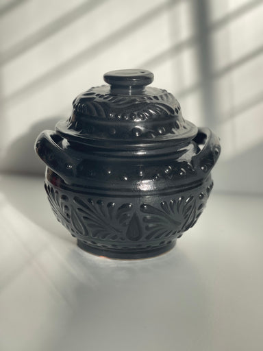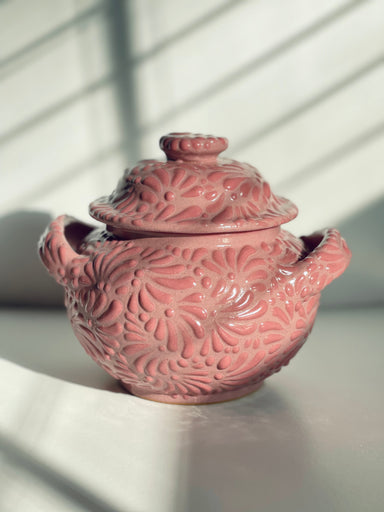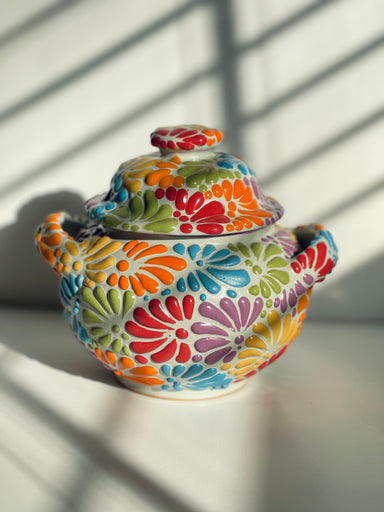 This Azucarera (sugar bowl) is handmade in Puebla Mexico and although the name infers its meaning, it is often a multipurpose pottery piece. Tala...